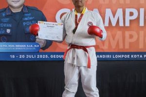 Sidrap, Beritasidrap.com – Bripda La Majeng Anggota Sat. Samapta Polres Sidrap berhasil meraih juara 1 pada kejuaraan Karate Inkanas Sulsel Series I