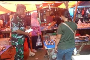 Sidrap,Beritasidrap.com – Babinsa Kelurahan Empagae, Koramil 1420-03/Maritengngae, Serka Ramli, melaksanakan pemantauan ketersediaan dan harga bahan pokok di Pasar Empagae, Kecamatan Watang Sidenreng,