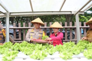 Sidrap, Beritasidrap.com – Kapolres Sidrap AKBP Fantry Taherong didampingi Ketua Bhayangkari Cabang Sidrap Ny. Dian Fantry meluncurkan Program Pekarangan Pangan Lestari (P2L)