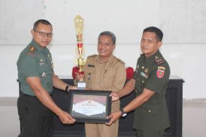 Sidrap, Beritasidrap.com – Komandan Kodim 1420/Sidrap Letkol Inf Andika Ari Prihantoro, SE., M.I.Pol., menyerahkan langsung piala penghargaan lomba karya bakti kepada Koramil