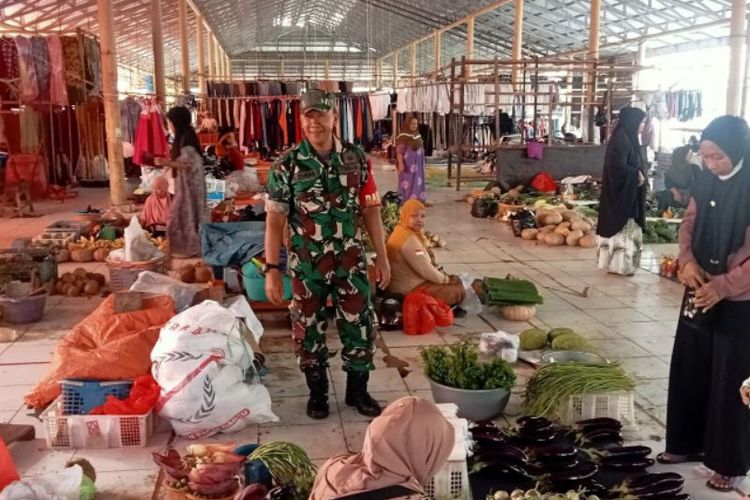 Serma Syahniwan Dani melakukan observasi lapangan dan berdialog dengan para pedagang maupun pembeli. Pemantauan difokuskan pada sejumlah komoditas strategis seperti beras, minyak goreng, gula pasir, telur, daging sapi, serta berbagai jenis sayuran segar.