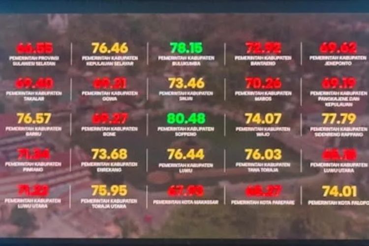 Pada level kabupaten/kota di Sulawesi Selatan, posisi Sidrap berada tepat di bawah Kabupaten Soppeng dengan skor 80,48, serta Kabupaten Bulukumba yang meraih 78,15.