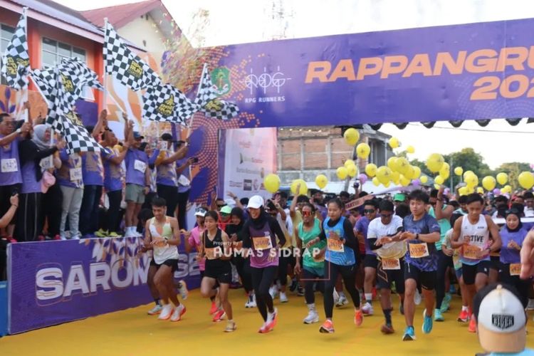 “Selamat datang para peserta Rappang Run di Kabupaten Sidrap. Selamat menikmati jalur Rappang Run yang dikelilingi persawahan hijau serta jalur yang dipenuhi lukisan dan kreasi anak-anak sekolah Sidrap,” ucap Syaharuddin.