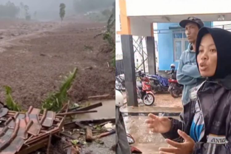 Kesaksian datang dari seorang ibu korban selamat yang mengaku mendengar suara dentuman keras sebelum longsor terjadi.
