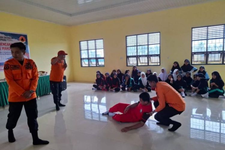 Dalam kegiatan tersebut, Tim Reaksi Cepat (TRC) BPBD melatih siswa mengenai pemasangan tenda darurat, evakuasi mandiri, hingga simulasi penyelamatan korban.