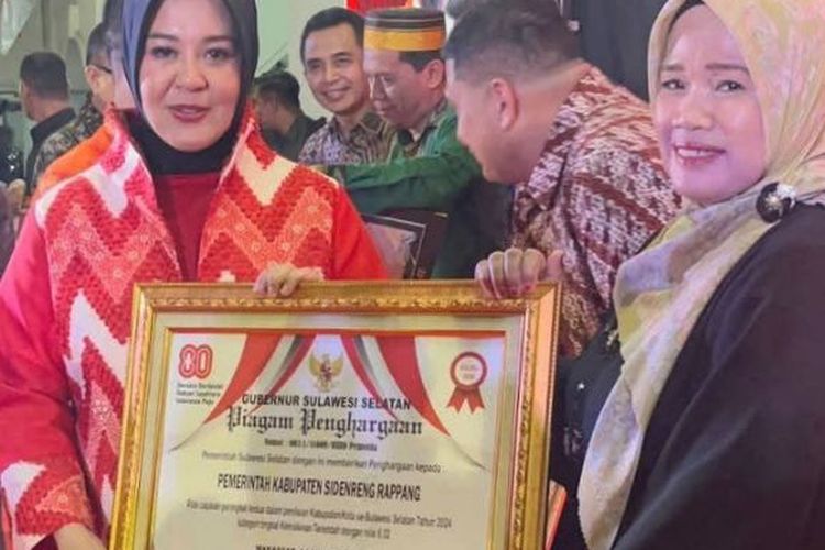 Makassar, Beritasidrap.com – Pemerintah Kabupaten Sidenreng Rappang (Sidrap) menerima penghargaan dari Pemerintah Provinsi Sulawesi Selatan bertepatan dengan peringatan Hari Ulang Tahun ke-80 Republik Indonesia, Ahad (17/8/2025).