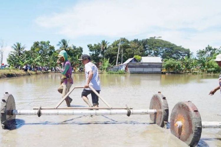 Dengan alat sederhana dari pipa paralon, Bupati turut menarik alat penebar benih menyusuri pematang sawah. Cara ini memperlihatkan kesederhanaan sekaligus kepedulian nyata seorang pemimpin terhadap pekerjaan petani.