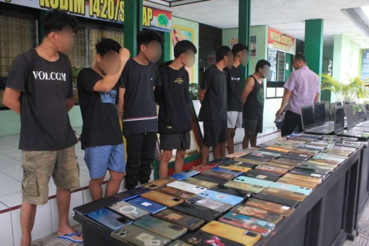 Sebanyak tujuh pemuda berhasil diamankan bersama puluhan barang bukti berupa ponsel, laptop hingga printer.