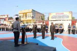 BERITASIDRAP.COM – Kapolres Sidrap AKBP Erwin Syah,SIK.,MH didampingi oleh Ketua Bhayangkari Ny Siska Erwin Syah pimpin upacara wisuda purna bakti dengan pedang
