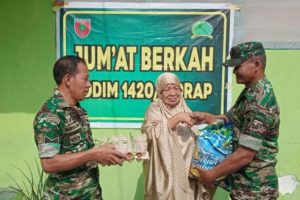 BERITASIDRAP.COM – Dalam rangka program “Jumat Berkah”, Komando Distrik Militer (Kodim) 1420/Sidrap melakukan kegiatan amal dengan memberikan bantuan sembako kepada warga kurang